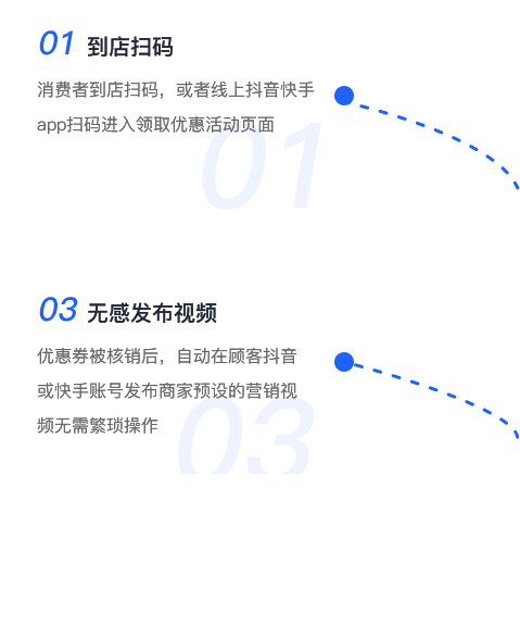 商家以到店客户扫码领取优惠券为理 由,让消费者通过扫码在自己的短视频平台 上面去生成商家店铺的宣传视频并且 自动发布。视频里面会添加商家的门 店地址和团购信息,发布成功后还会自动@商家 让商家知道这个消费者发成功了,整 个流程仅仅几秒!