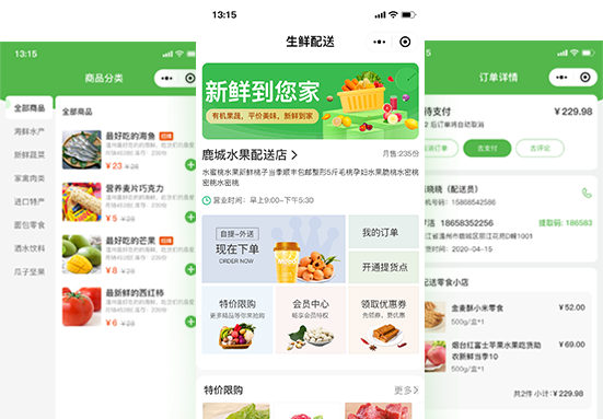 生鲜配送小程序助你构建更广阔的销售平台,薄利多销, 在销售数量上获得更大的优势。帮你打造属于你自己微 信生鲜蔬菜配送渠道,降低配送成本,获得规模效益。